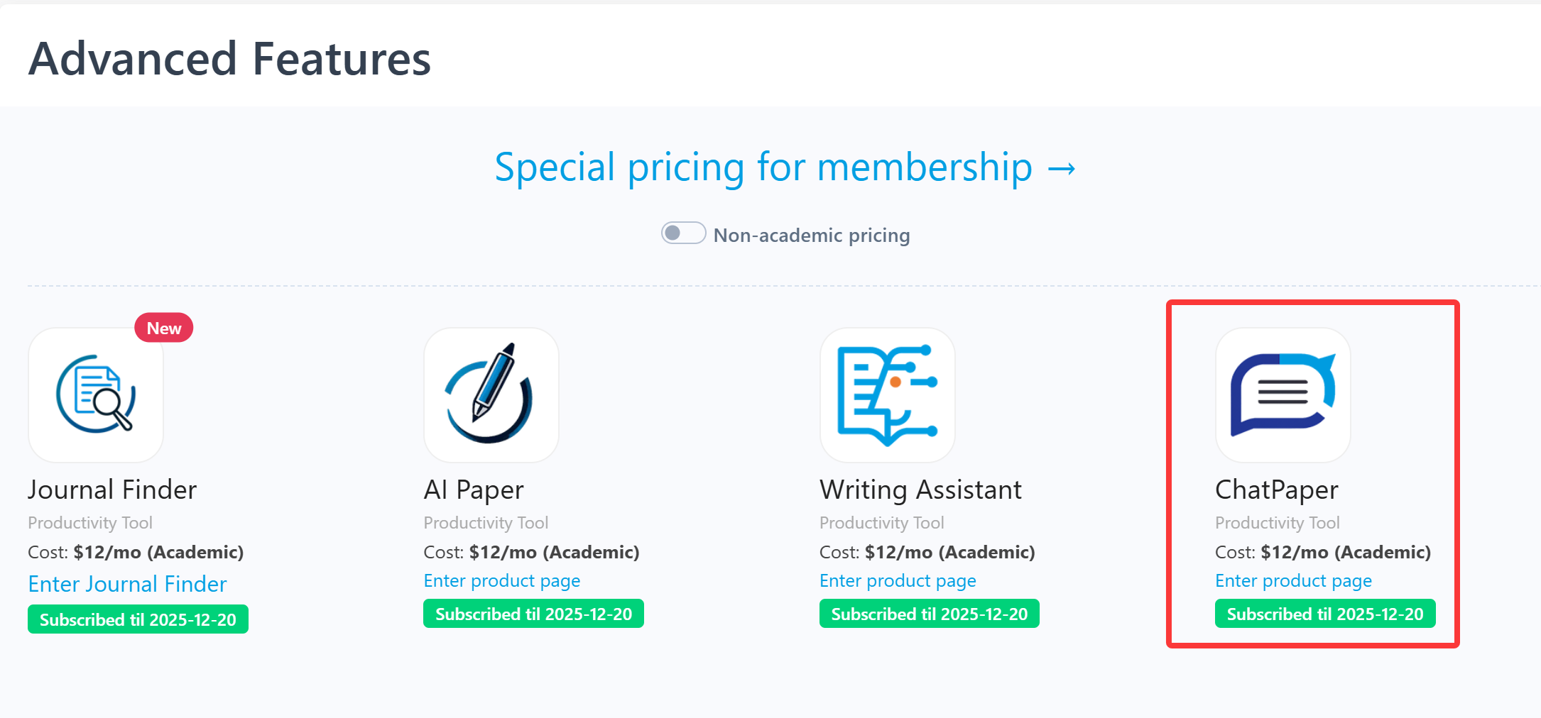 ChatPaper is an advanced feature offered by Stork (free trial is available). After registering/logging into Stork (https://www.storkapp.me), you can find ChatPaper under the "Advanced Feature" section. Then you can try it out or subscribe. Alternatively, you can visit ChatPaper website directly at https://www.storkapp.me/chatpaper/