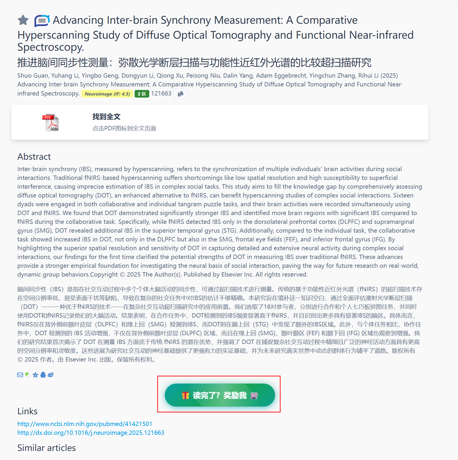 为了鼓励大家坚持阅读文献,文献鸟上线了读文献抽奖的玩法!只要你认真阅读文献,在每篇文献的详情页里(摘要下方)就可以直接参与抽奖啦!