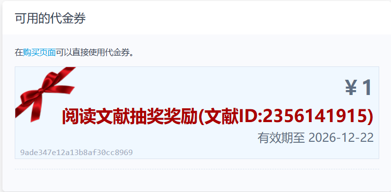 (免费)订阅文献鸟的文献推送功能后,认真阅读推送文献即可在摘要下方进行抽奖获取代金券。代金券有效期一年,可叠加使用。