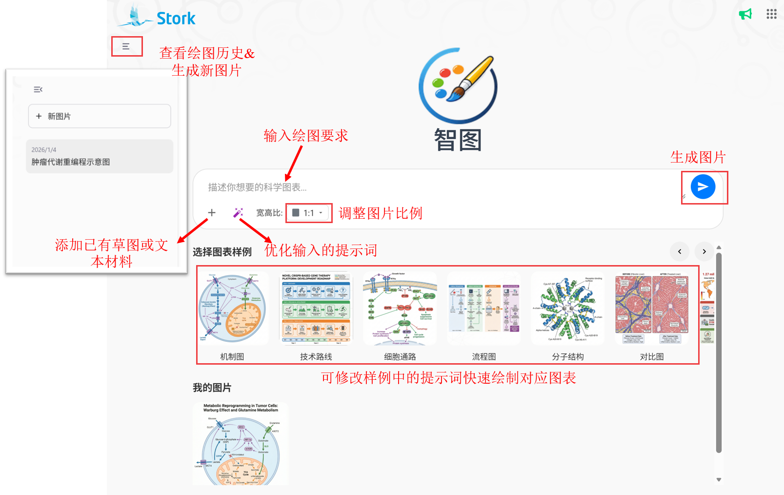 进入【智图】的页面(https://www.storkapp.cn/aifigure/app.php),在对话框中描述想要生成的图片详情即可生成对应图片。