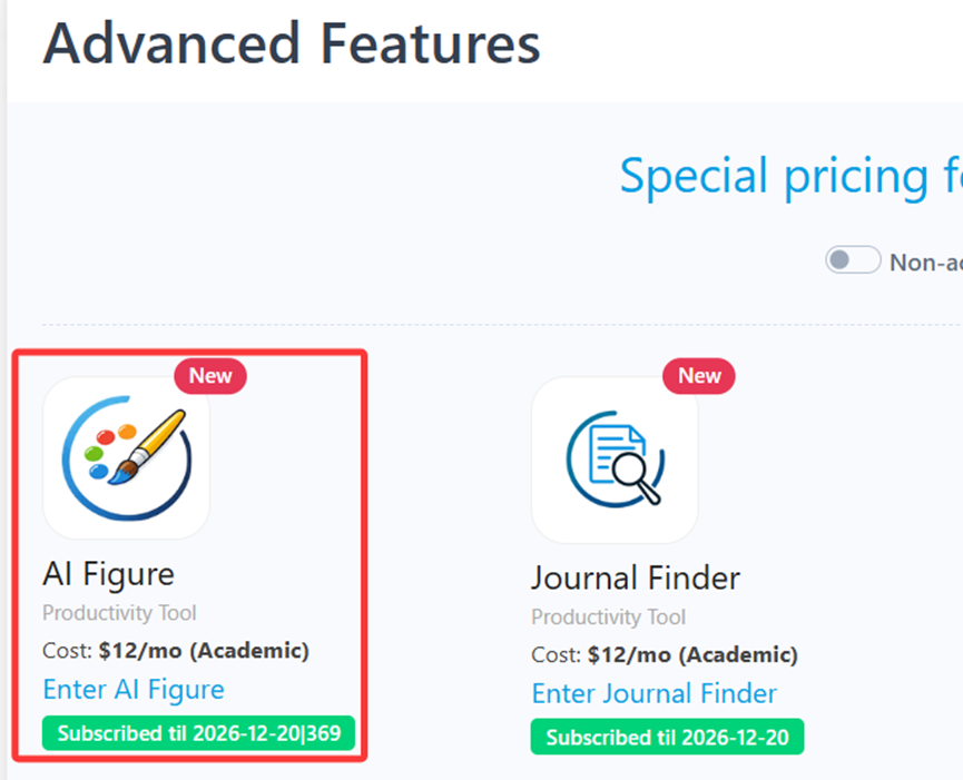 AI Figure is an advanced feature offered by Stork, which requires subscription (registered users can try 5 figures for free). After registering/logging in to Stork (https://www.storkapp.me), you can find AI Figure under the advanced features section. Then you can try it out or subscribe. Alternatively, you can visit the official AI Paper website directly at https://www.storkapp.me/aifigure/app.php