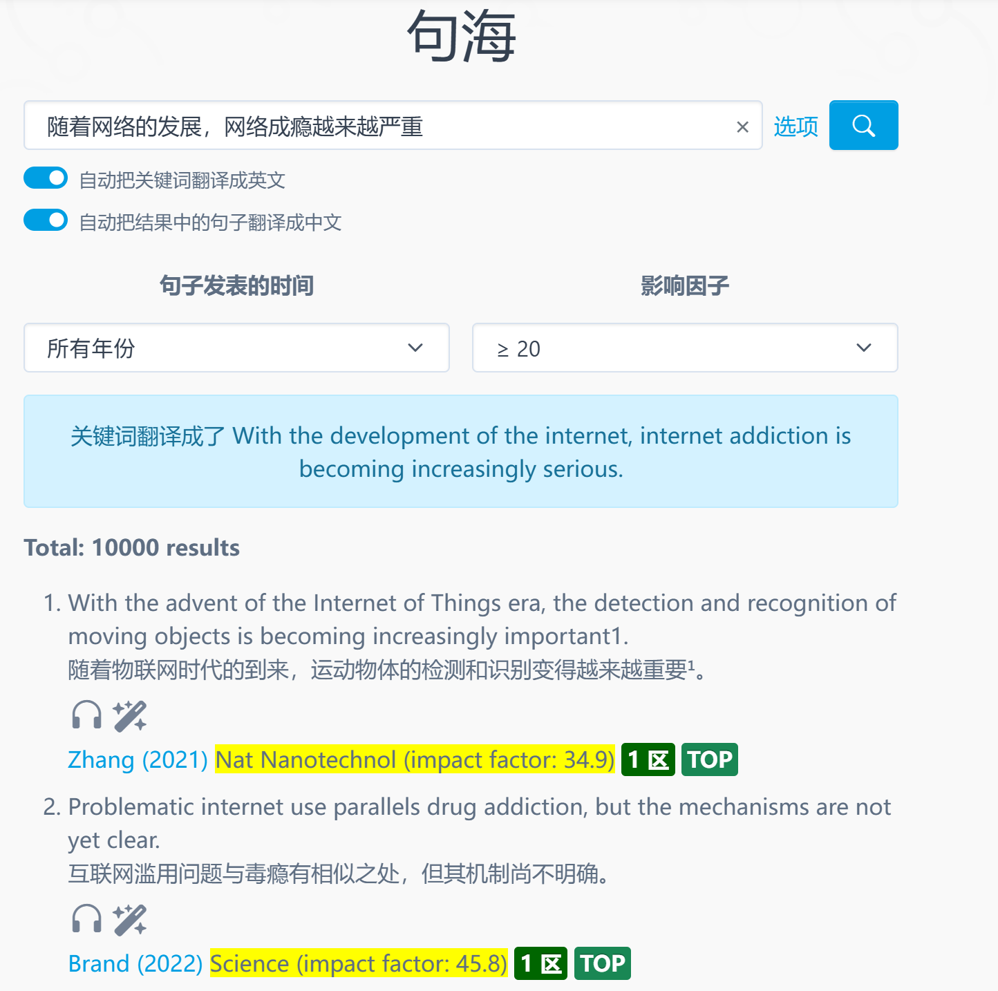 不过,正因为句海能够搜索到的结果非常多,很多时候我们难以在短时间内把所有内容都翻看一遍。